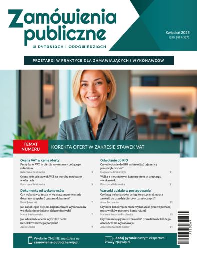 W najnowszym wydaniu naszej publikacji podejmujemy temat niezwykle istotny dla praktyków zamówień publicznych – błędów w określaniu stawek VAT w ofertach wykonawców. Zagadnienie to, choć może wydawać się techniczne, niesie ze sobą poważne konsekwencje prawne i finansowe, wymagając od zamawiających precyzyjnej oceny i szybkich decyzji. W temacie numeru nasi eksperci analizują konkretne przypadki, które doskonale ilustrują skalę problemu. Dowiesz się m.in., jak należy ocenić ofertę wykonawcy, który błędnie zastosował preferencyjną stawkę VAT na przeglądy aparatury medycznej, gdy SWZ nie precyzowała jej charakteru jako wyrobu medycznego. Poznasz również stanowisko Sądu Najwyższego oraz KIO w kwestii poprawiania stawek VAT – w szczególności w kwestii tego, kiedy zamawiający może dokonać korekty, a kiedy musi odrzucić ofertę. Przywołujemy również przykłady innych orzeczeń, które pomogą uniknąć kosztownych błędów proceduralnych. Zachęcam serdecznie do lektury całego numeru – dzięki naszym wskazówkom podejmiesz decyzje, które zagwarantują prawidłowość prowadzonych postępowań oraz bezpieczeństwo finansowe instytucji.